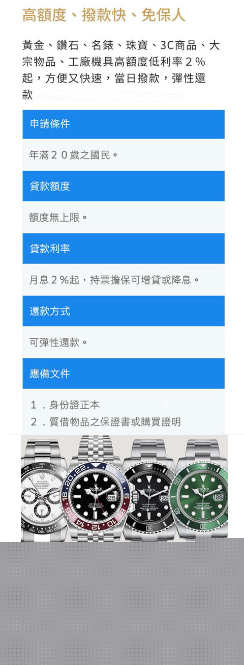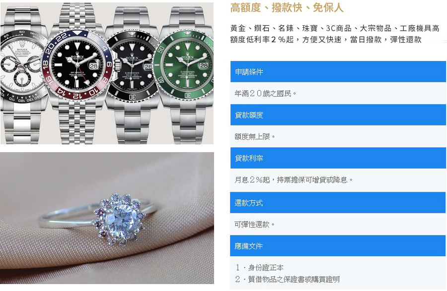 中和區優質當舖手續簡單當日撥款